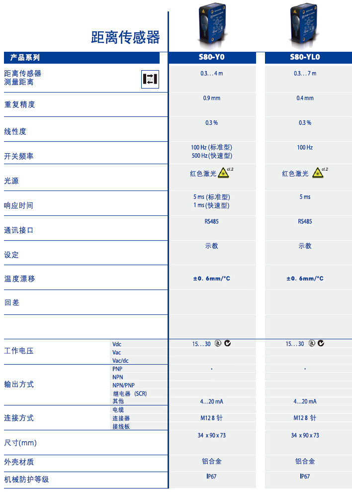 103819/S80-Y1/S80系列距离传感器(测量距离)