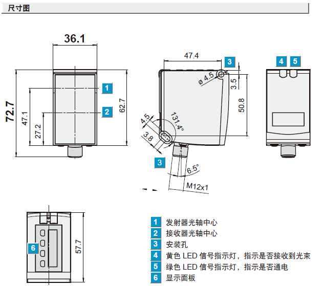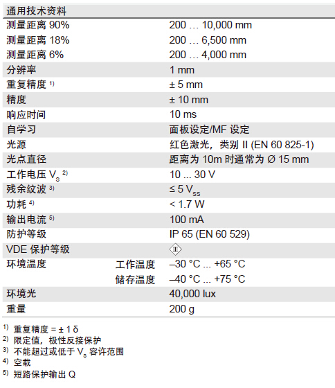 基于“飞行时间”测量原理,测量快速、准确(漫反射量程远达10米); 直观的显示面板,调试方便、快捷; 红色恒温激光光点,定位精确; -30°C至±65°C宽温工作范围;