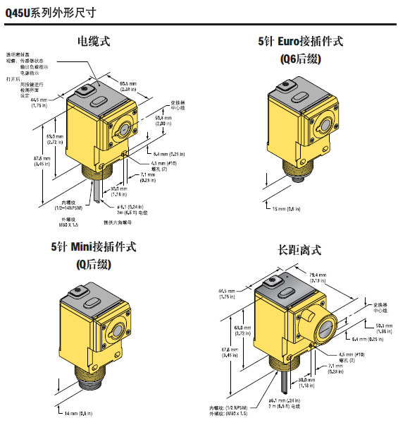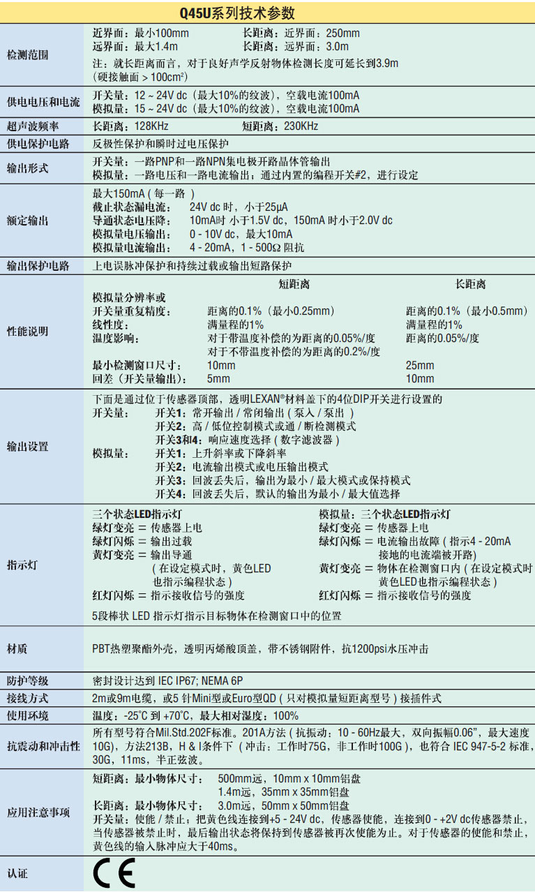 只需一按键; 可选响应模式及响应时间; 远程编程设定(模拟量产品); 设定存储卡-Q45UML;