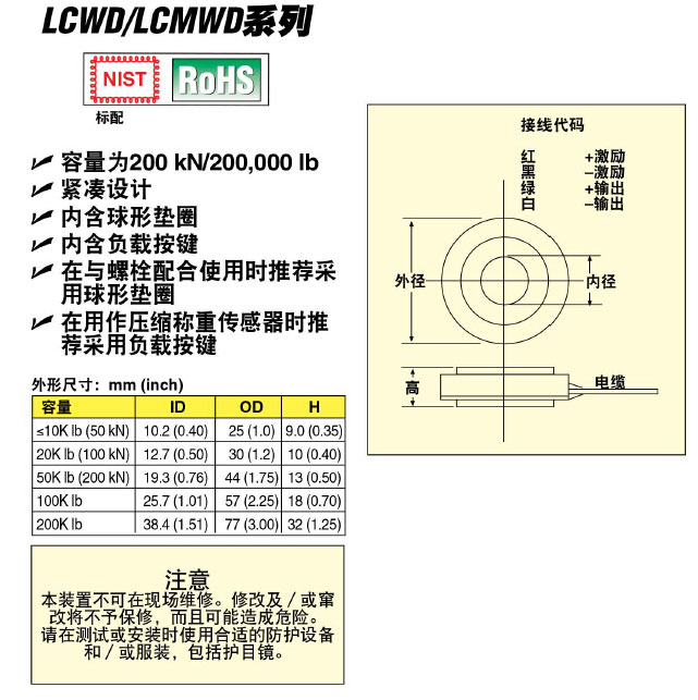 LCMWD系列载荷垫圈(用于测量螺栓压缩力标准及公制型号)