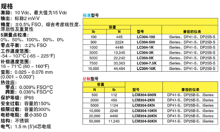 LC304系列直径仅25.4mm(1")的不锈钢压缩称重传感器(标准及公制型号)