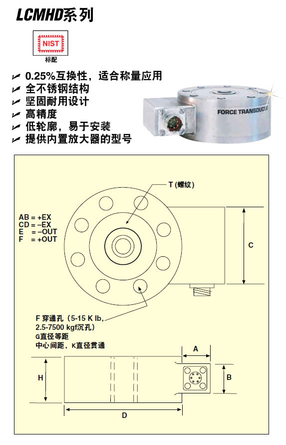 0.25%互换性,适合称量应用; 全不锈钢结构; 坚固耐用设计; 高精度; 低轮廓,易于安装; 提供内置放大器的型号;