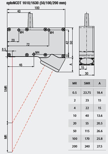 | 测量范围 | 0.5mm | 2mm | 4mm | 10mm | 20mm | 50mm | |