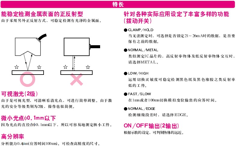 能稳定检测金属表面的正反射型;