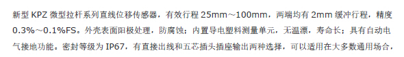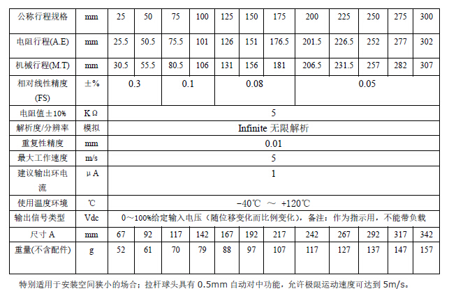 线性优异; 分辨率高于0.01mm; 高运行速度; 可在各种恶劣环境下使用(潮湿、油污、灰尘); 防护等级IP67;