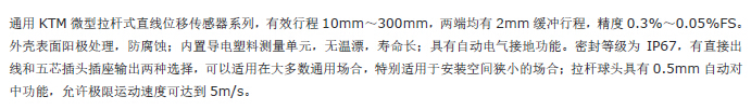 线性优异; 分辨率高于0.01mm; 高运行速度; 防护等级IP67;