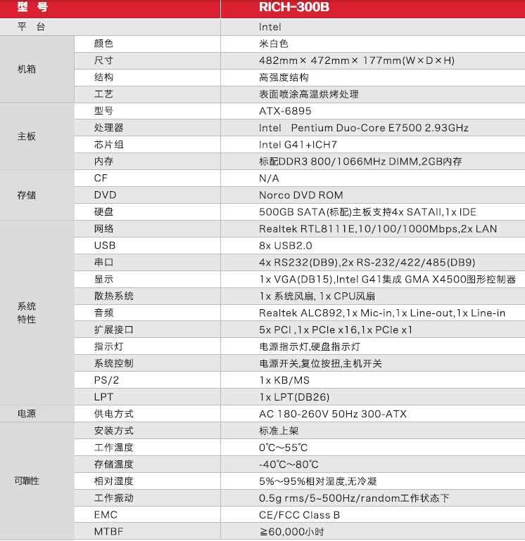 RICH-300B系列 基于Intel G41芯片组的4U工业原装整机