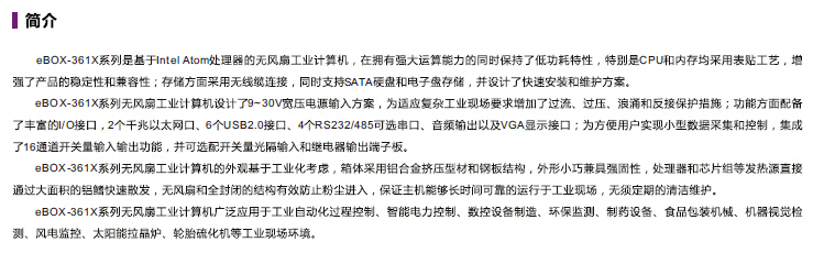eBOX-361X系列 低功耗Intel® AtomTM无风扇工业计算机