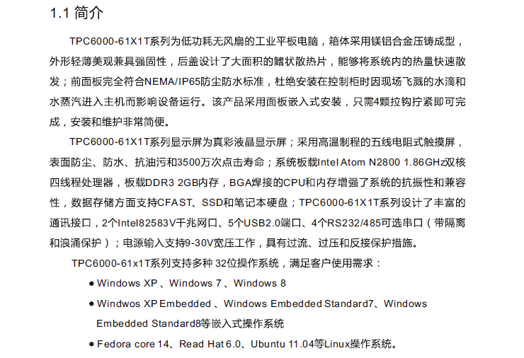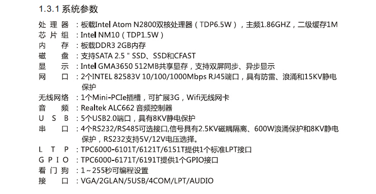 6121T:板载Intel® N2800/1.86GHZ处理器/12" 液晶屏1024x768;