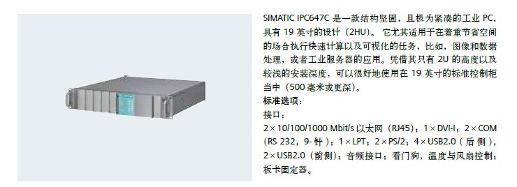 SIMATIC IPC647C系列 19英寸的设计,结构坚固,且极为紧凑的工业PC.
