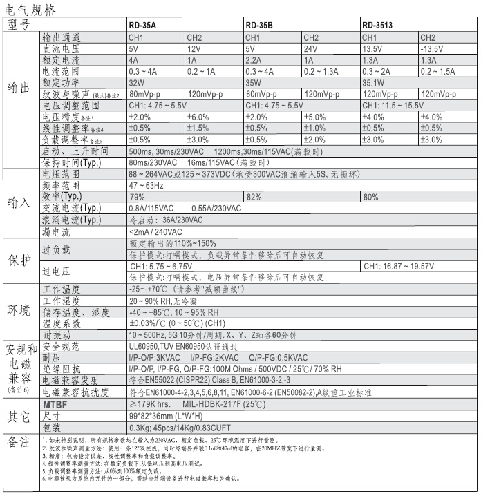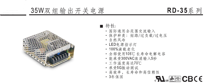 RD-35系列 35W双组输出开关电源