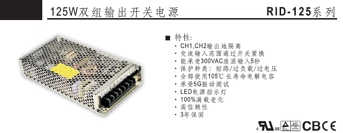 RID-125系列 125W双组输出开关电源