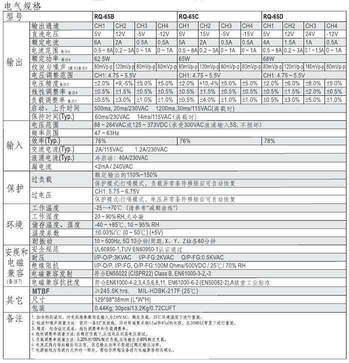 RQ-65系列 65W四组输出开关电源