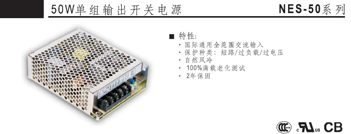 国际通用全范围交流输入;保护种类:短路/过负载/过电压;100%满载老化测试;2年保固。