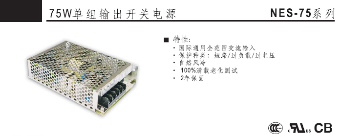 国际通用全范围交流输入;保护种类:短路/过负载/过电压;100%满载老化测试;2年保固。